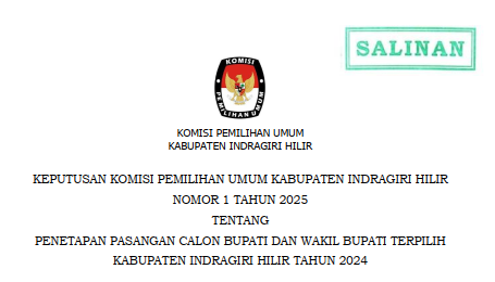 3. SALINAN KEPUTUSAN HASIL PENETAPAN HASIL PEMILIHAN BUPATI DAN WAKIL BUPATI INDRAGIRI HILIR TAHUN 2024