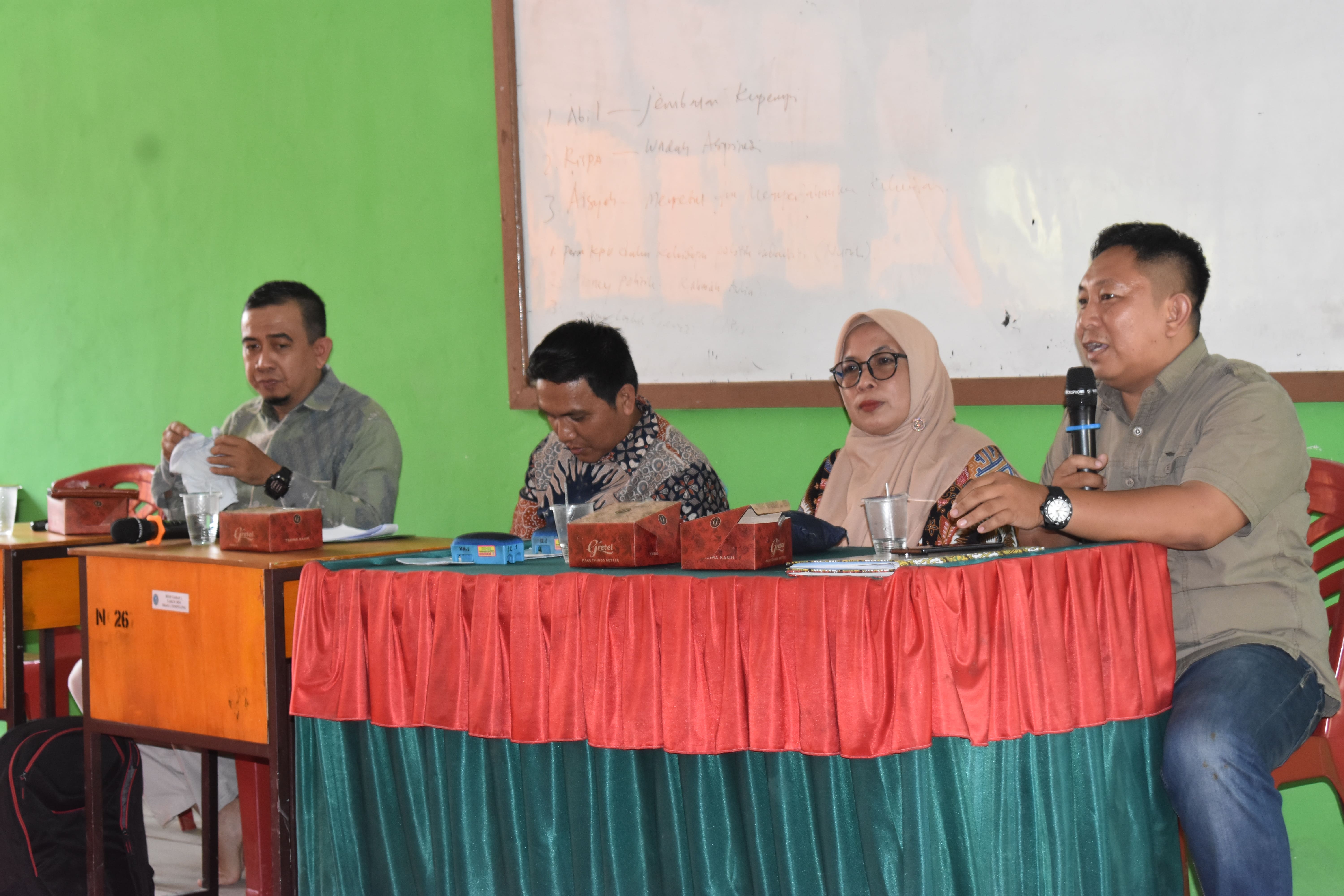 Hadir dalam kegiatan ini Muhammad Yusuf, Anggota KPU Inhil Divisi Teknis, Mohd Riza Fahlifi, Anggota KPU Inhil Divisi Perencanaan, Data dan Informasi, serta Muhammad Arif, Anggota KPU Inhil Divisi Sosialisasi, Pendidikan Pemilih, Partisipasi Masyarakat dan SDM yang juga bertindak sebagai pemateri. Turut mendampingi, Kasubbag Parmas dan SDM KPU Inhil, Rini Ambarwati, S.