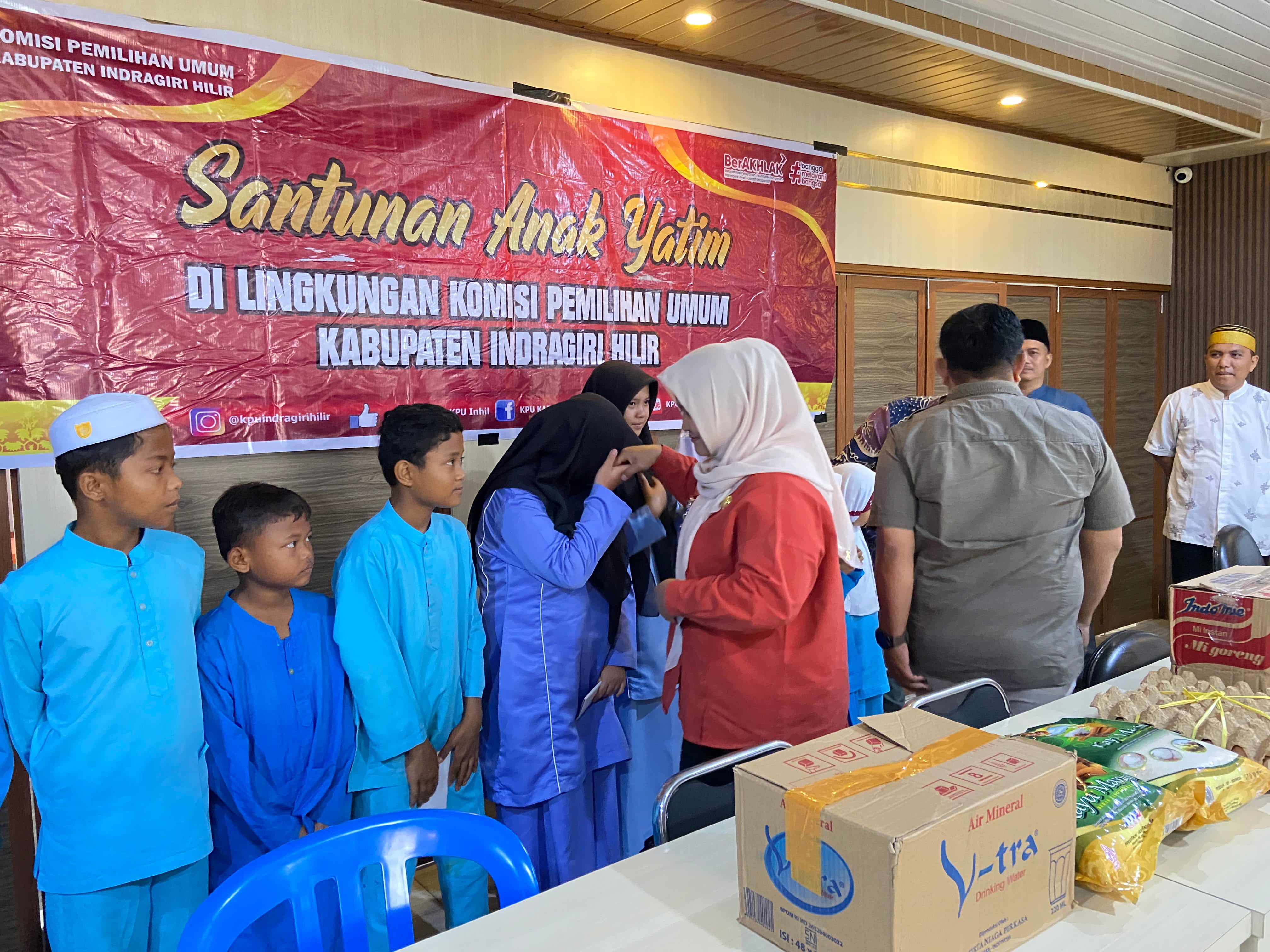 Komisi Pemilihan Umum (KPU) Kabupaten Indragiri Hilir melaksanakan kegiatan Santunan Anak Yatim pada Jumat, 6 Februari 2026, bertempat di Aula Kantor KPU Kabupaten Indragiri Hilir.